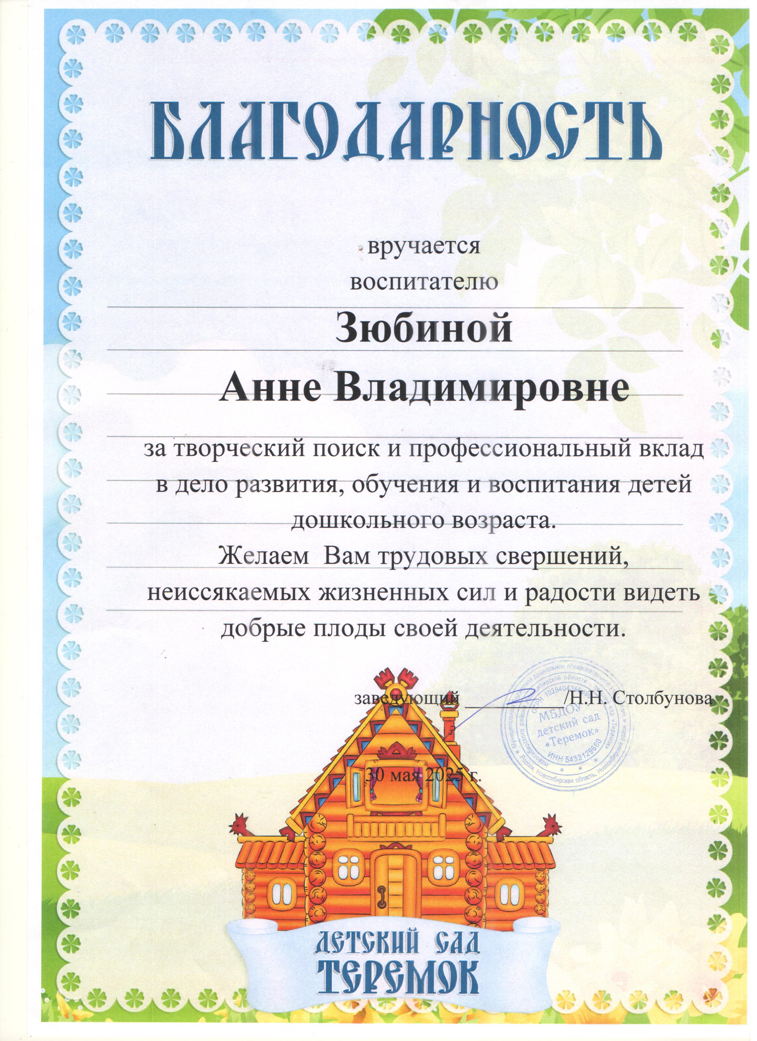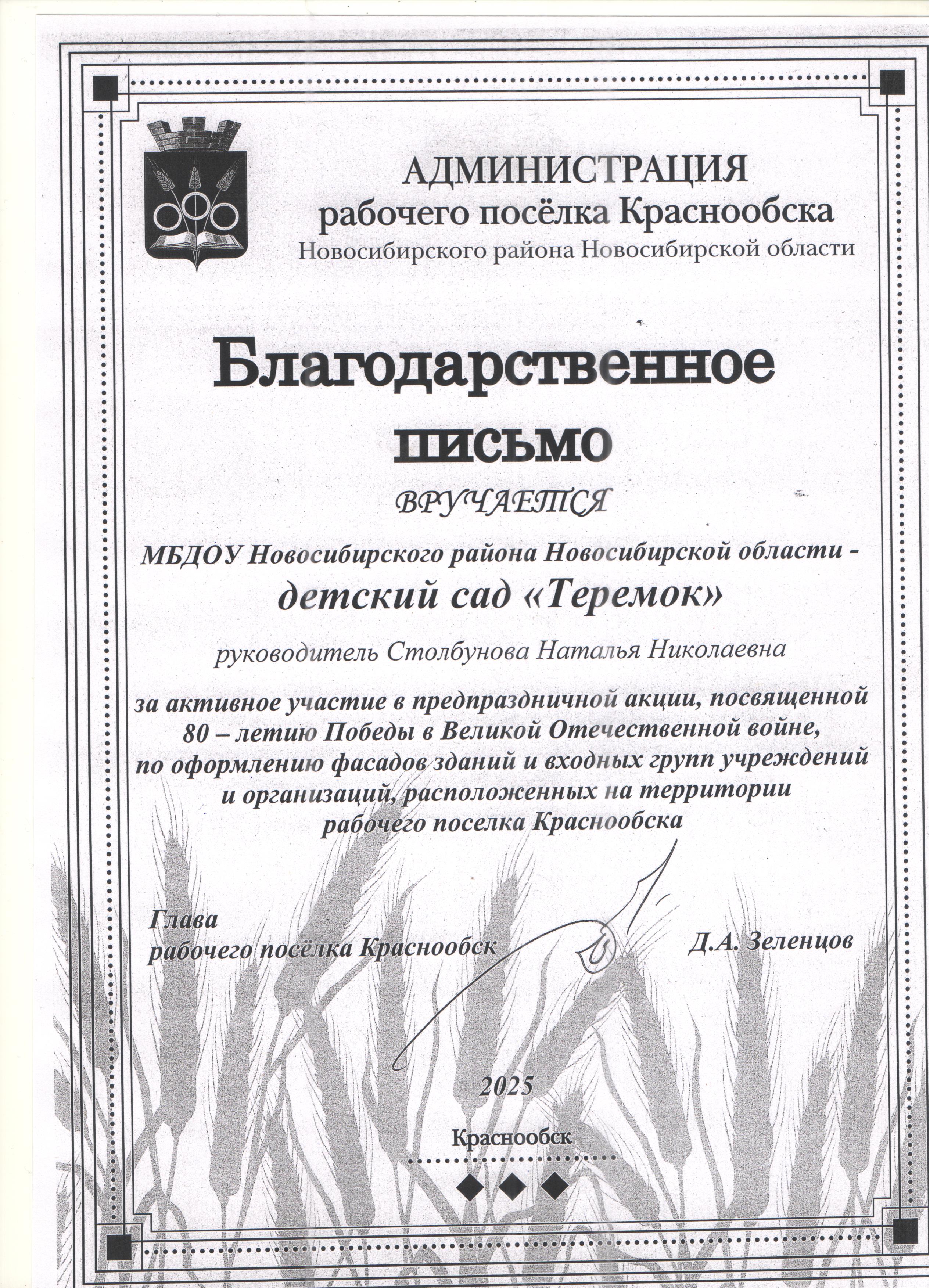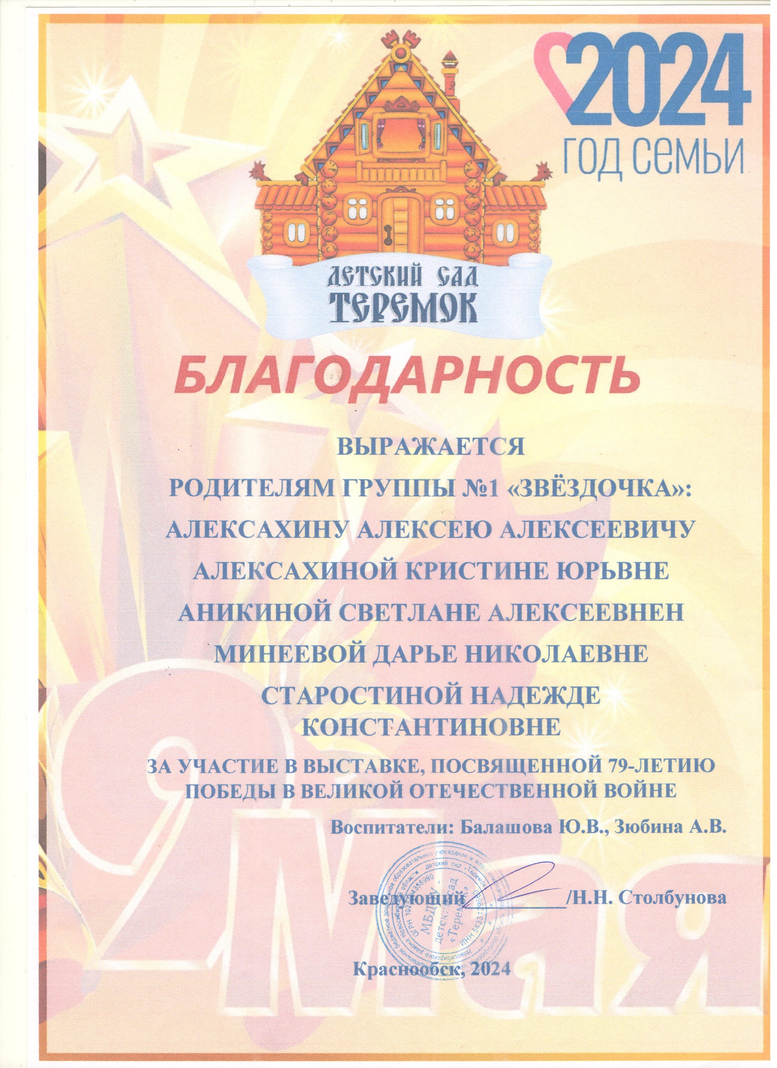 Благодарность за участие в выставке к 79 летию Великой Победы