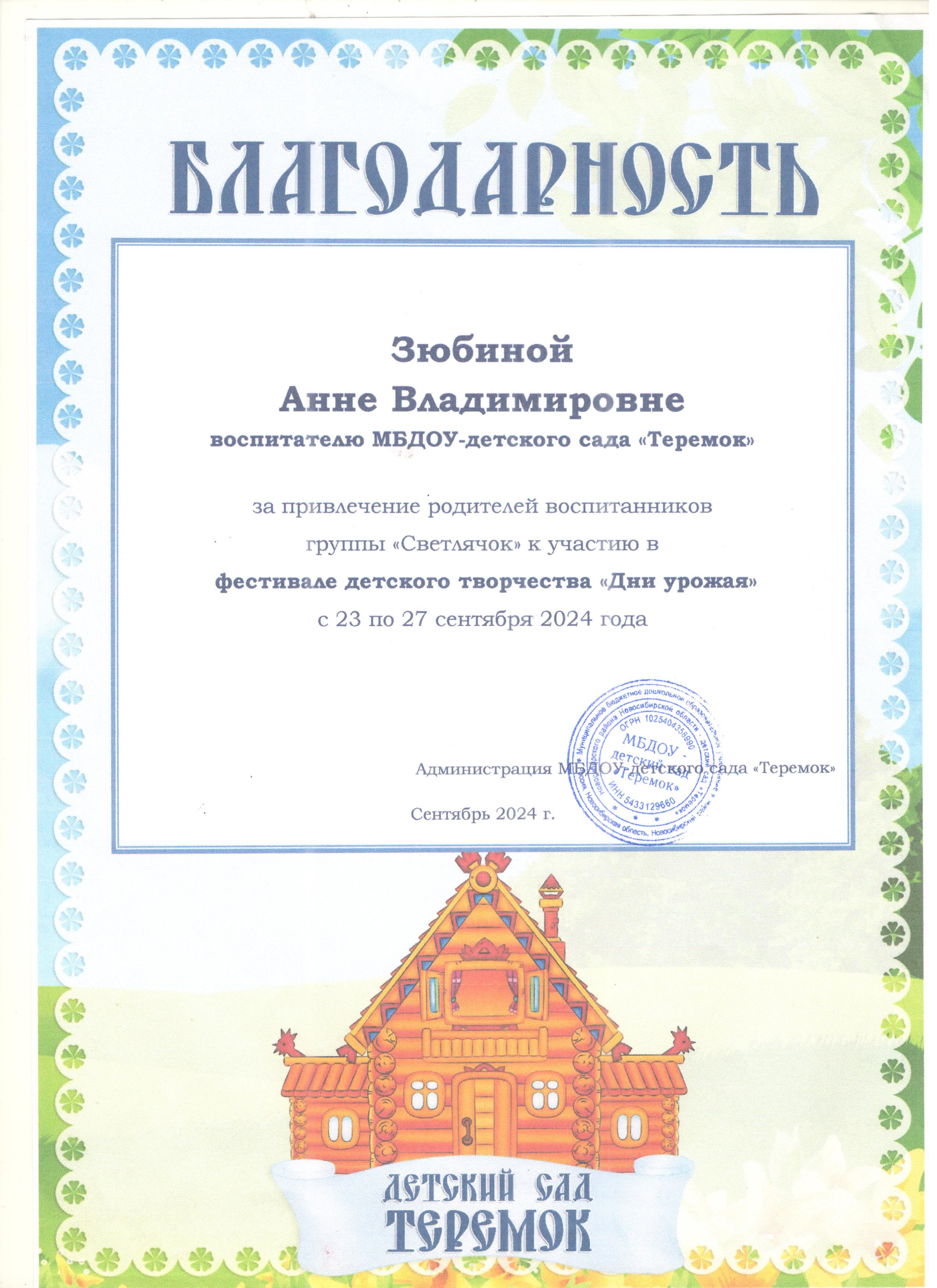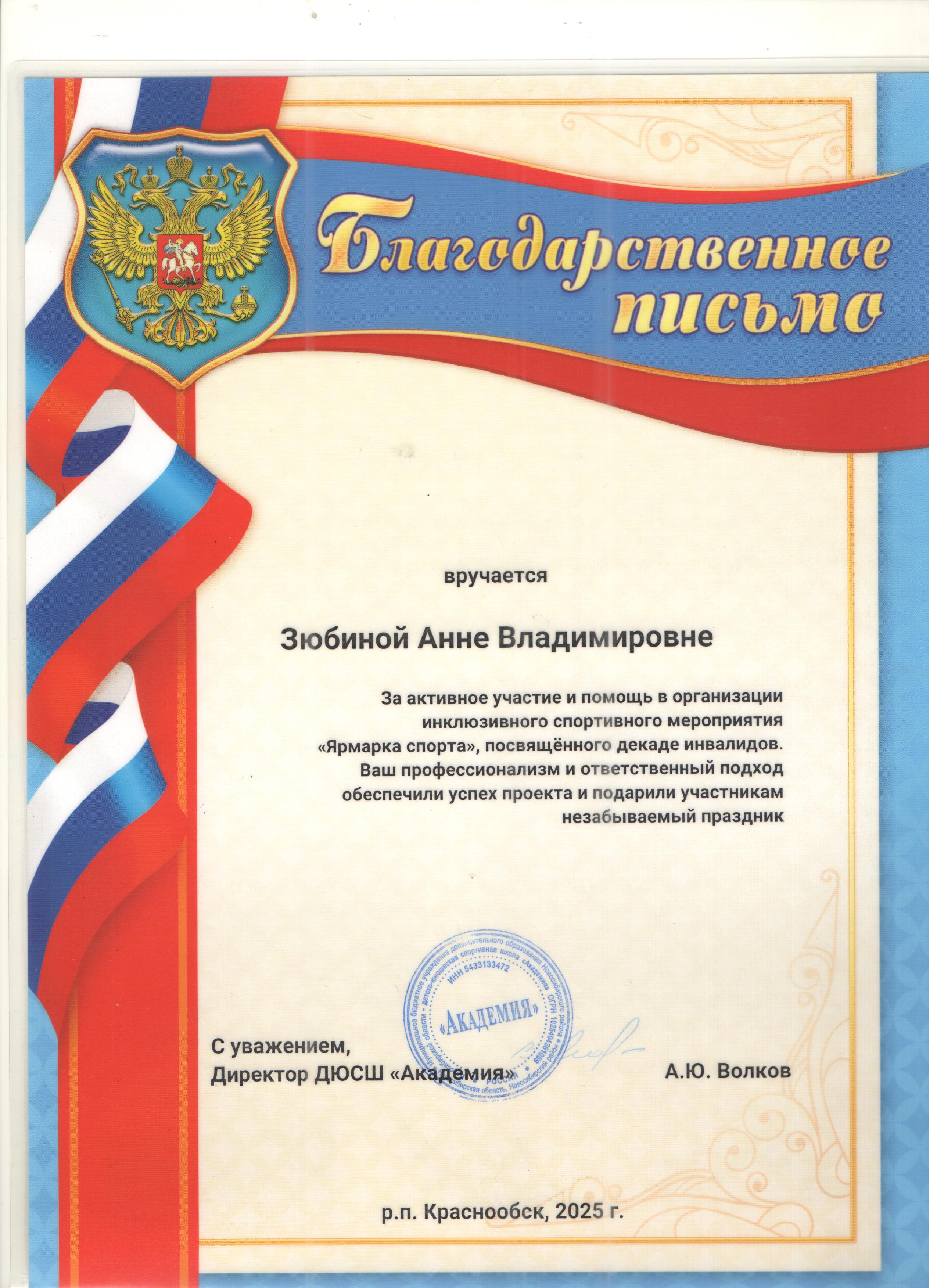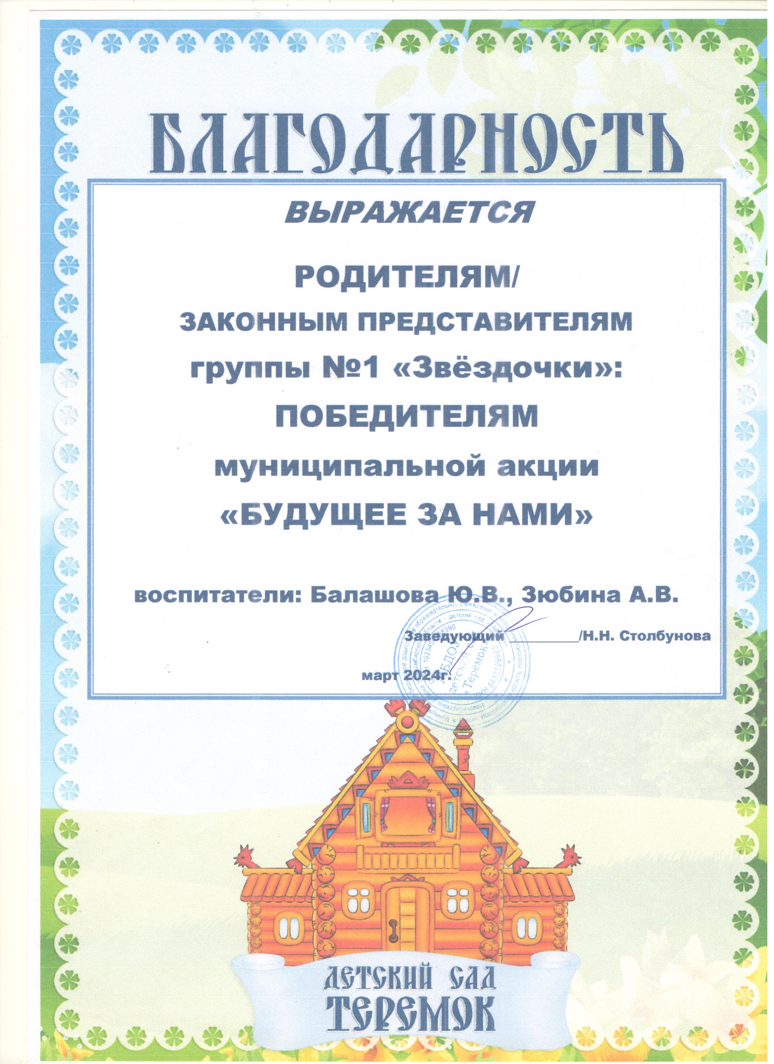 Благодарность за участие в выставке к 79 летию Великой Победы