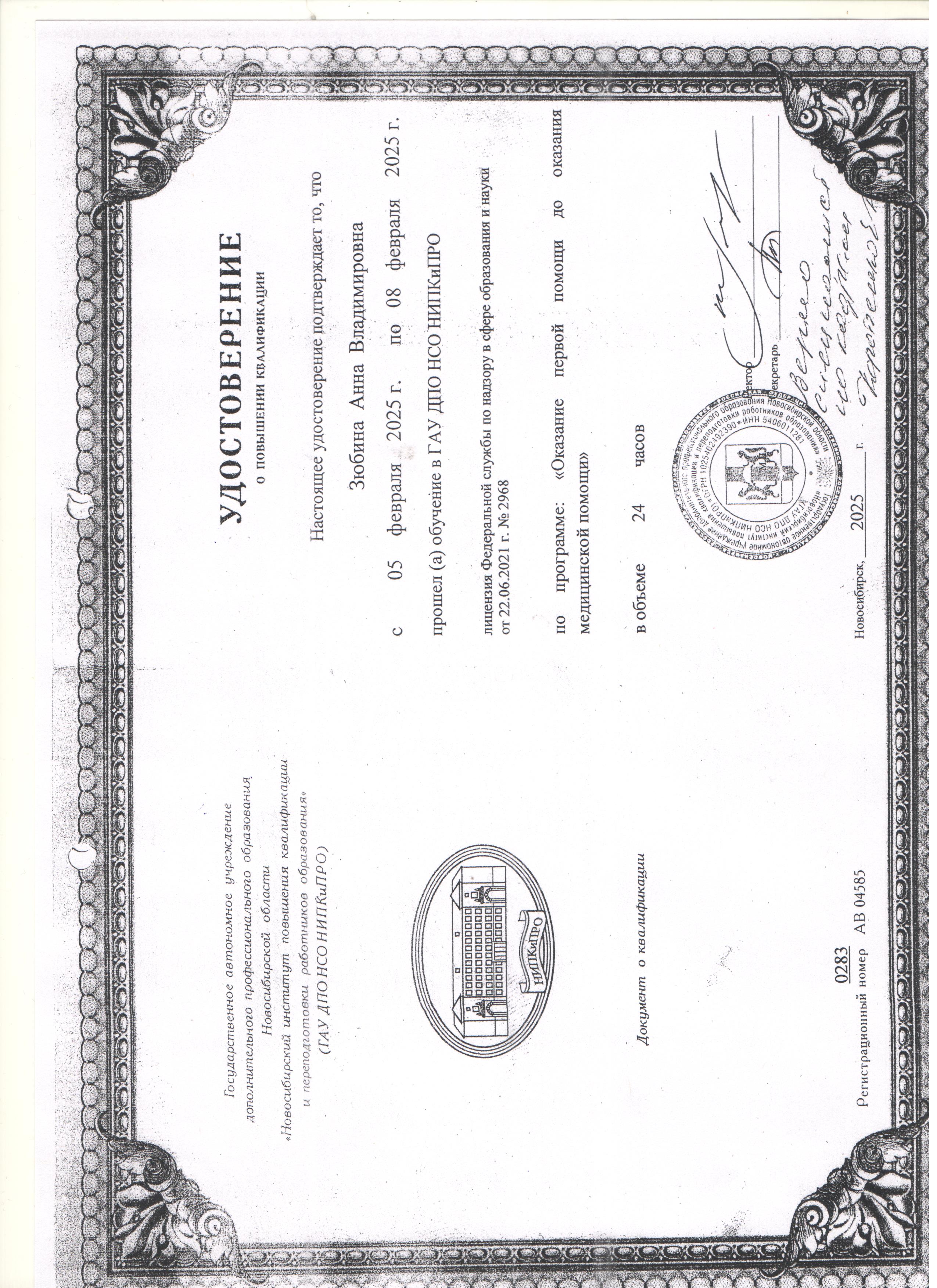 (ГАУ ДПО НСО НИПКиПРО. 24часов. Форма обучения: очно. Направленность: иное).