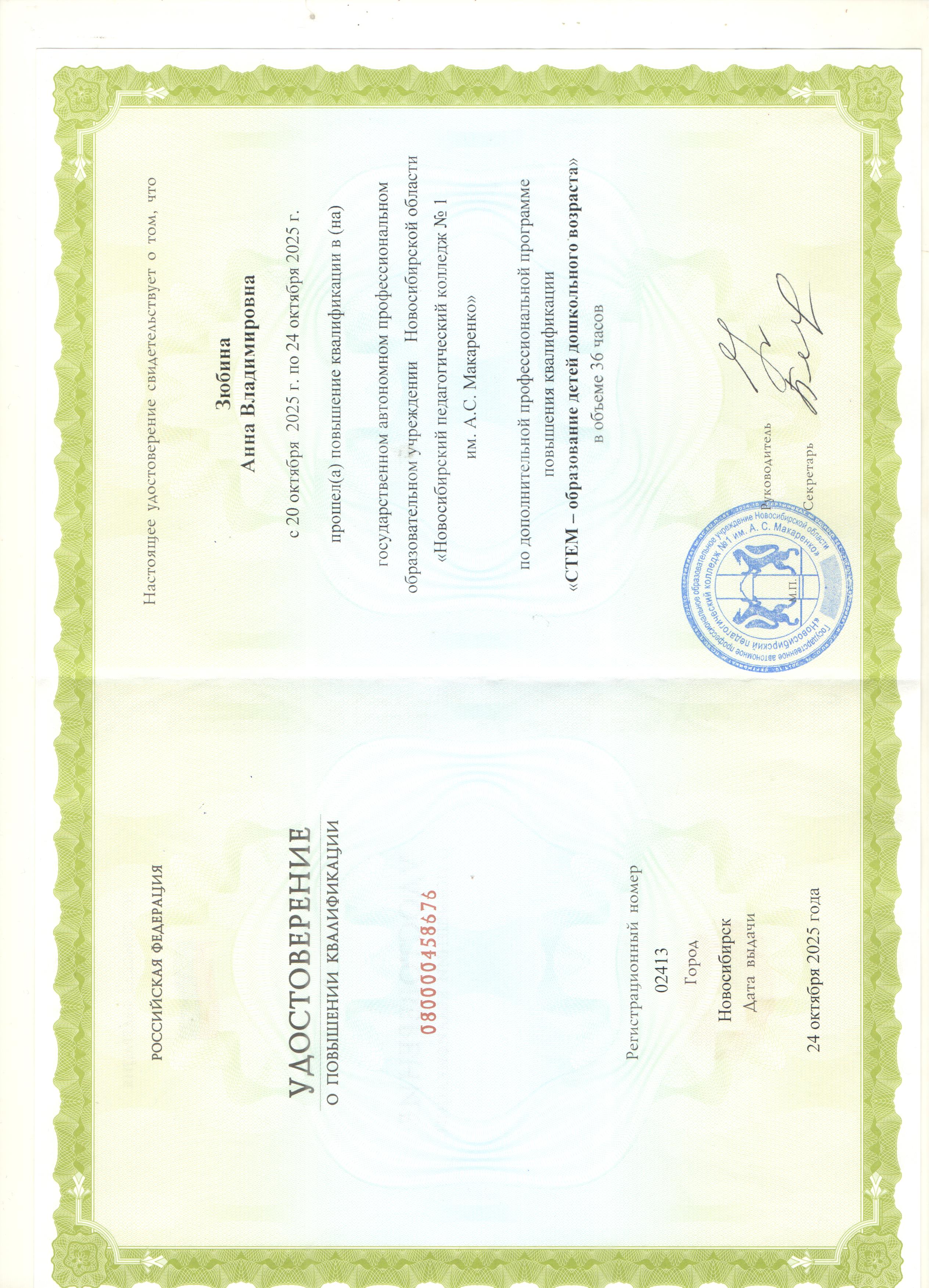 (Государственное автономное профессиональное образовательное учреждение Новосибирской области "Новосибирский педагогический колледж №1 им А.С. Макаренко". 36часов. Форма обучения: очная.).
